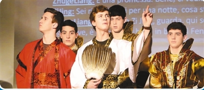 在当地举办的2018年中国农历春晚上,意大利罗马住读学校学生用汉语表演《三国演义》故事。 |
