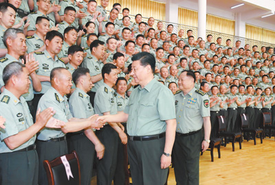 5月21日,中共中央总书记、国家主席、中央军委主席习近平到陆军步兵学院视察。这是习近平亲切接见驻江西部队副师职以上领导干部和建制团级单位主官、陆军步兵学院本部正团职以上干部和石家庄校区主官、专家教授代表。 |