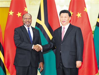 习近平强调,中国一贯主张国家不分大小、强弱、贫富,都是国际社会平等一员,反对大国沙文主义。中方高度赞赏瓦方坚定奉行一个中国政策,支持瓦方自主选择适合本国国情的发展道路。双方要保持高层交往势头,拓展政党、立法机构对话,交流分享治国理政经验,增进彼此政治互信。要以签署共同推进“一带一路”建设合作规划为契机,加强战略对接,深挖合作潜力,拓展各领域务实合作。中方愿同瓦方深化农业技术合作,支持瓦方优势产业发展,继续鼓励有实力的中国企业赴瓦努阿图投资兴业。要加强文明交流互鉴,促进两国人员往来,积极开展地方交流合作。中国秉持正确义利观和真实亲诚理念同太平洋岛国加强团结合作。我们在岛国没有私利,不谋求所谓“势力范围”,将永远做值得岛国信赖的好朋友、好伙伴。