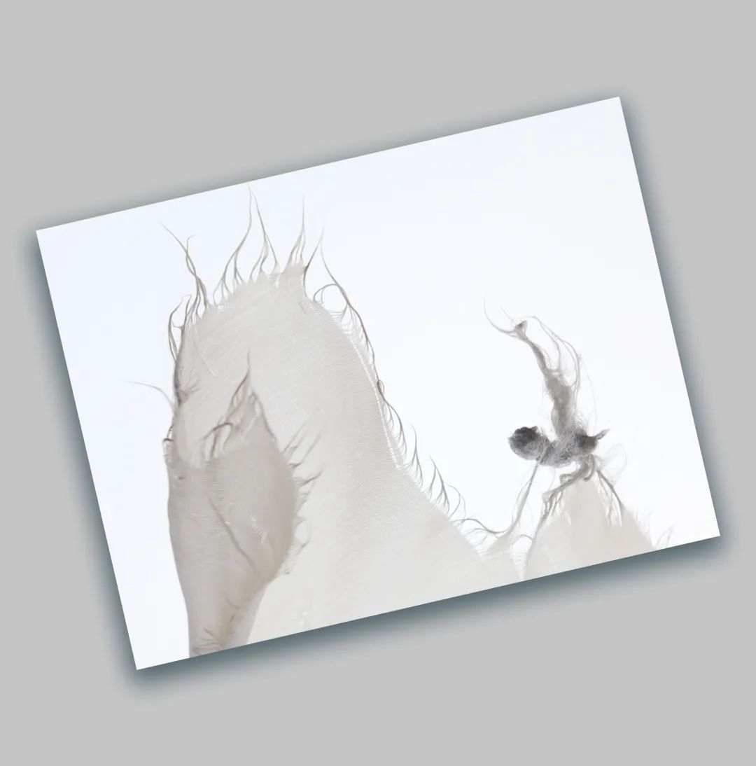 我们把摄影、绘画归于视觉艺术,然而无论道还是佛,都认为感官具有欺骗性和虚幻性。形为无,色乃空,因而对视觉的真性须持怀疑和警惕。而超越形色之相,直抵生命真性,是谓“无相法门”。荆浩说绘画须“度物象而取其真”这个“度”有两种理解:一是审度,即审视物象而抓取最生动的形态加以表现;二是超越,即不拘泥于物象的表面相似,表现世界的“元真气象”展示“物象之原”。《高原舞者》舍弃舞者实相,而抓住风的动感瞬间,由此照射出“高原”旷远寥廓的宇宙气象和“舞者”自由率真地海泄于天地自然的生命韵律,于上述两者兼而融之。画面单纯而丰富,热烈而雅致,于无意的瞬间达成永恒。金农在一则画跋中发可:“茫茫宇宙,何处投人?”在无限的宇宙时空中,哪里是人的安身立命之处?这突兀一问,正如高更在他生命的净土塔希提岛上创作《我们从哪来?我们是谁?我们将向何方?》这幅油画中的关切,是对生命存在价值和意义的追寻。《高原舞者》从天人关系上阐释了这一问题的答案在天人合一的意象境界中,具体之物的“幡”,是麻是布,或别的什么,并不重要。重要的是作者在托物言志、即景抒情。故景与情合,生机妙化。这大概也是作者称这些布麻乱丝为“经幡”和“舞者”的理由,因为它们正是妙合了此情此景的天机。