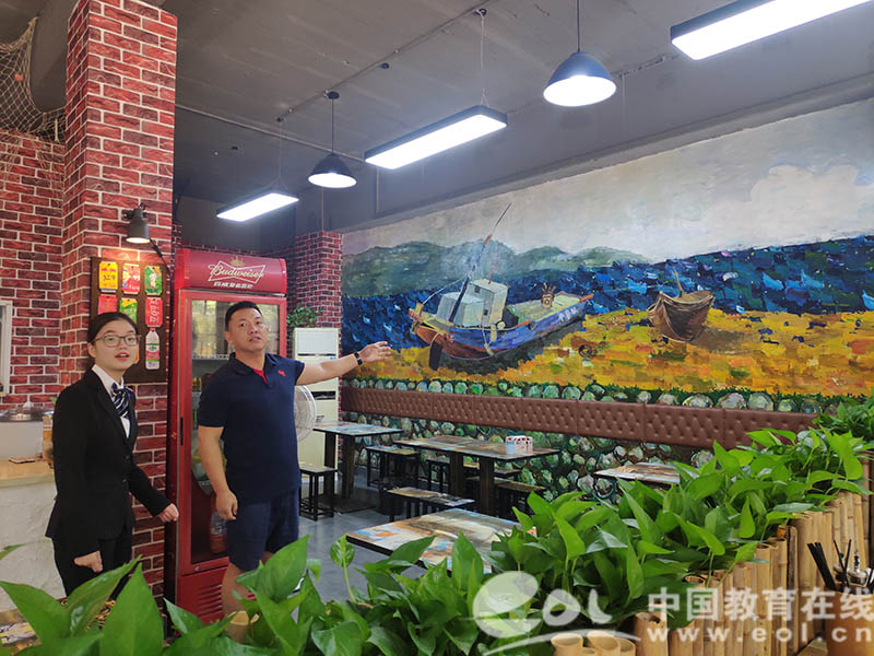 “她们三个女孩上山砍竹子,被蚊虫叮得一塌糊涂。从不会锯到慢慢学,帮我做成这个竹篱笆,真不简单!”瓶窑老街一家面馆的老板张晖从一开始完全不信任这些大学生,到后来被深深地感动,他说:“他们很了解我这个面馆的特色,做出来的感觉就像小时候在海边院子里,妈妈做碗海鲜面,旁边就是大海。老顾客们一来都有眼前一新的感觉。”在浙江农业商贸职业学院林紫豪和她的团队为这个面馆进行内部空间改造之后,面馆营业额增长了39%。