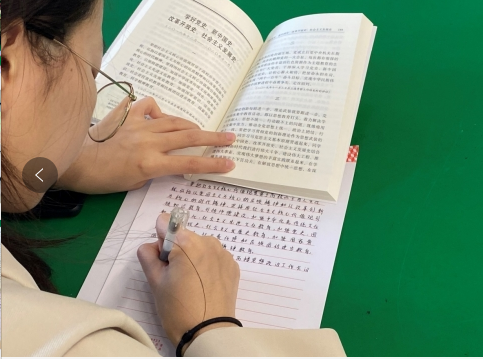 活动中,全体学员学习了习近平总书记《论中国共产党历史》,系统回顾党团结带领中国人民不懈奋斗的光辉历程,并认真研读“学好党史、新中国史、改革开放史、社会主义发展史”这一章节内容。随后,各小组代表诵读该章节党史内容。活动最后,全体学员工工整整地手抄党史,在抄写党史的同时,学习历史、领悟历史,培养历史思维、树立历史眼光、增强历史担当。