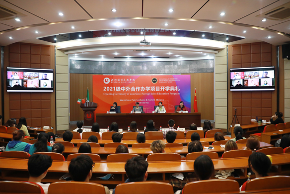 日前,温州职业技术学院与意大利米兰ACME美术学院2021级合作办学项目开学典礼在温职院罗山厅开展,两校领导、相关部门负责人,以及中意合作服装与服饰设计专业教师、2021级中意合作办学项目全体新生出席典礼。受疫情影响,此次典礼采用ZOOM会议的形式线上线下同步开展。