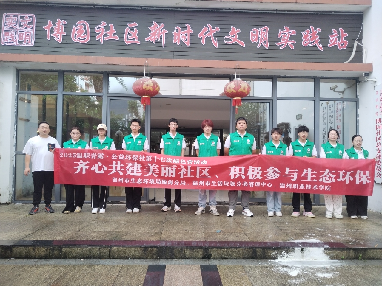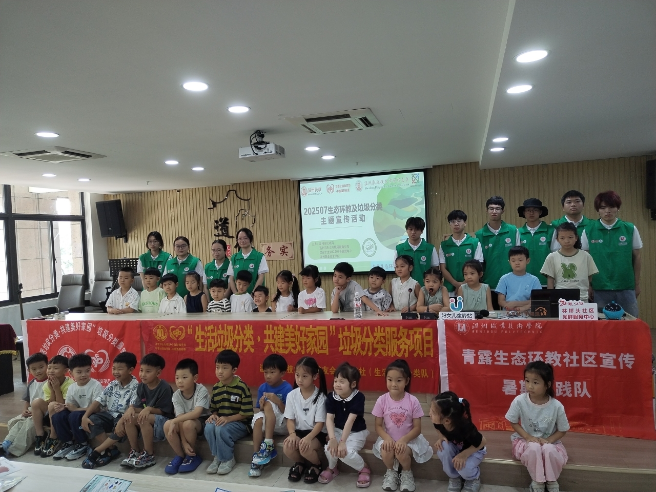 在“绿水青山就是金山银山”理念提出20周年之际,温州职业技术学院的青年学子们顶着炎炎夏日,满怀热忱地投身于生态环保理念的传播事业中。温州职业技术学院后勤基建处与校团委积极响应教育部关于开展习近平新时代中国特色社会主义思想学习的号召,精心组织了一场别开生面的暑期社会实践活动。此次活动联合温州市生态环境局瓯海分局、温州市生活垃圾分类管理中心以及瓯海区综合行政执法局,走进瓯海的多个社区,为居民们带来了一场场精彩的 “生态环教小课堂”。活动由学校青露?公益环保社组建实践队具体执行。