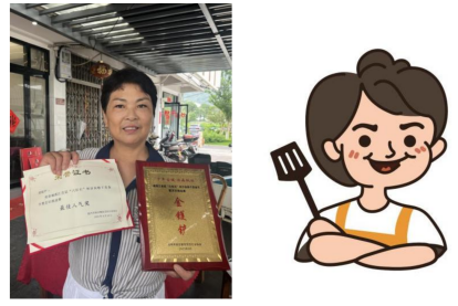当时,夏志良作为市级文化特派员,正好派驻在镬炉村,他们在一周内设计出“金穗”系列包装,还以镬炉村的非遗文化为底色,以黄银平为原型,设计创造了一个卡通IP形象“黄妈妈”。“黄妈妈”身着传统围裙,手持象征荣誉与传承的金镬铲,突破传统粉干品牌刻板印象,以年轻化的审美表达与主视觉系统设计,结合慢直播等形式,成功推动乡土文化从静态陈列转向动态传播。传统工艺融合现代美学,产品迅速走红,甚至成为游客必带的“楠溪伴手礼”。