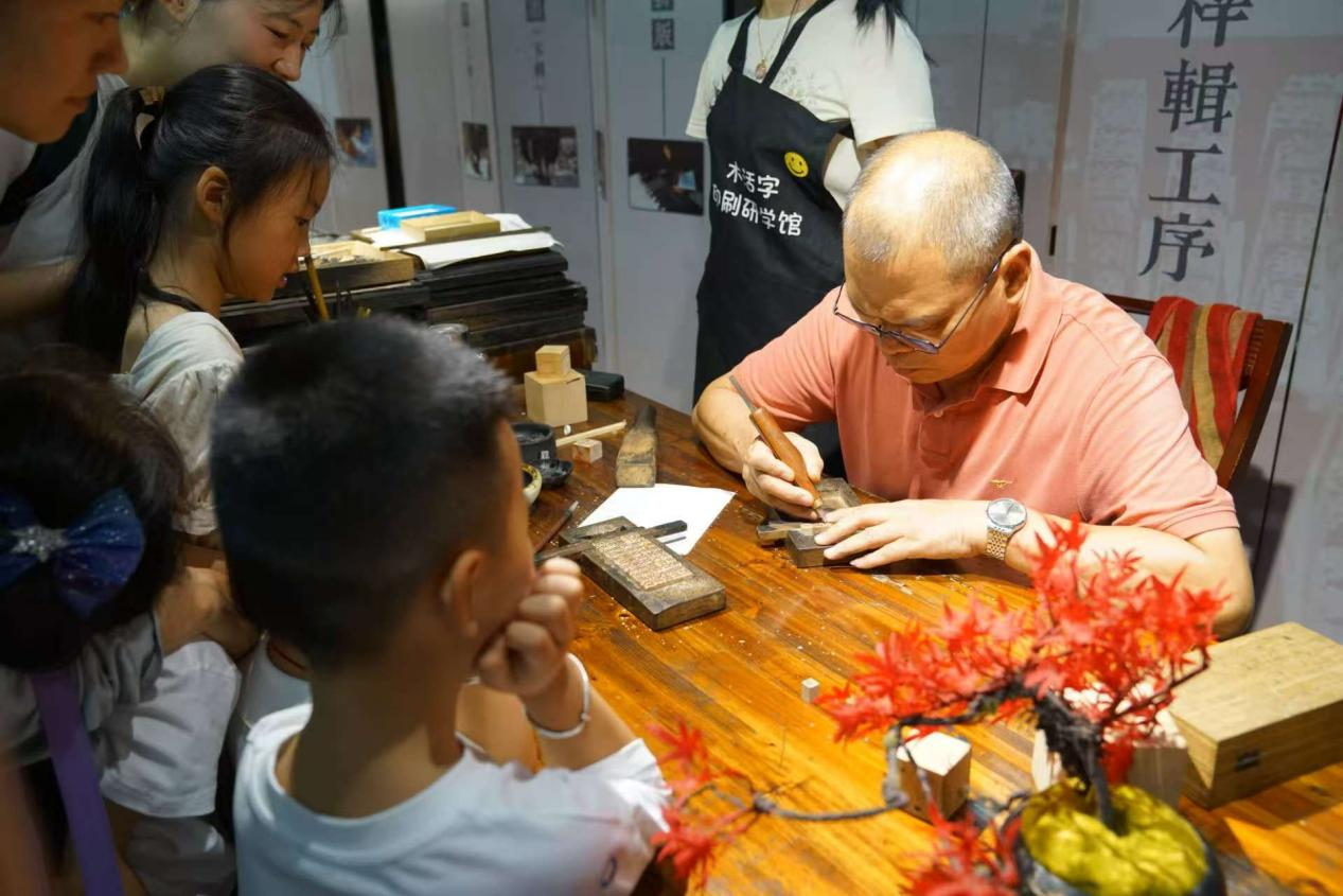 在讲解员清晰、流利的普通话讲述中,家长与孩子们一同寻觅“木活字的前世”。他们屏息凝神,近距离观察、轻轻触摸那些承载着千年文明密码的古老字模。每一个凹槽、每一道刻痕,都在诉说着汉字演变与印刷技艺的辉煌历程。孩子们好奇地提问,家长们耐心解释,普通话成为亲子间探寻中华文脉深厚底蕴的桥梁。