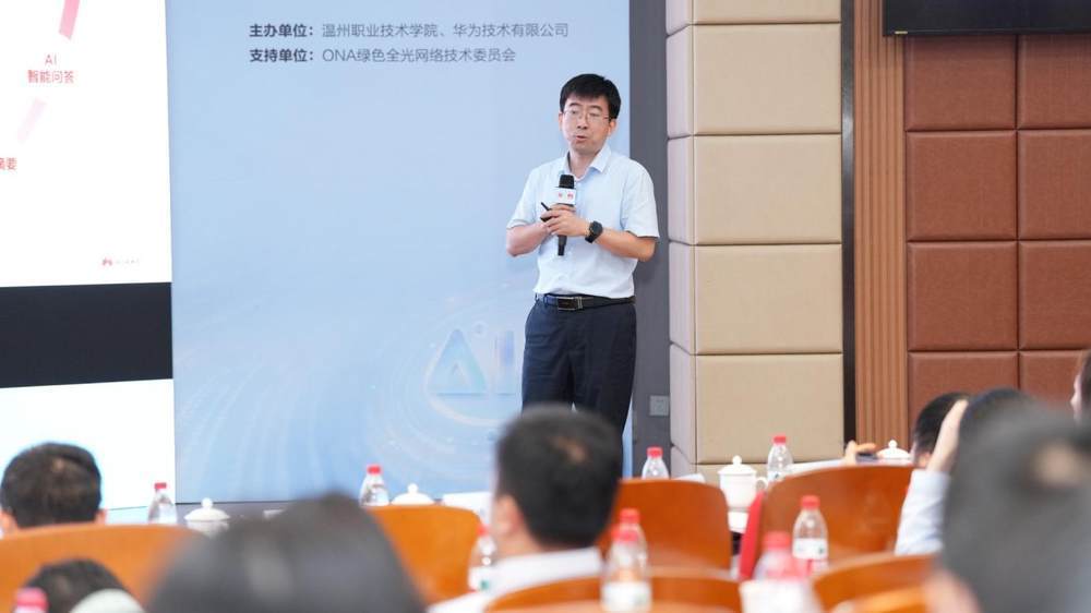 温州职业技术学院校长、党委副书记郑信军在致辞中表示,温职院是浙南闽北地区唯一两轮入选“中国特色高水平高职学校”建设单位的院校,人工智能学院师资力量雄厚,多次获国家级、省级教师教学能力比赛荣誉;科研成果丰硕,完成国家级、省级项目数十项,近 5 年授权发明专利47项;产教融合紧密,与50余家单位合作,引入资金超1500万,培训超4万人次;育人成效显著,获国家及省教学成果一等奖,学生斩获各级竞赛奖项数百项,特别是近3年获华为ICT大赛实践赛高职组全球二等奖1项、三等奖2项、全国一等奖2项,全国二等奖6项。华为深耕ICT领域,始终以技术创新赋能教育发展,与温职院十余年合作硕果累累,从课程共建到光网络学院、F5G全光实训室共建,实现合作质的飞跃,联合培育的300余名人才已崭露头角。教育数字化是时代必然,期待与华为持续深化合作,共推技术融入教学、联合科研攻关、共建开放生态,助力培养数字工匠,赋能区域数字经济,为教育强国建设贡献力量。