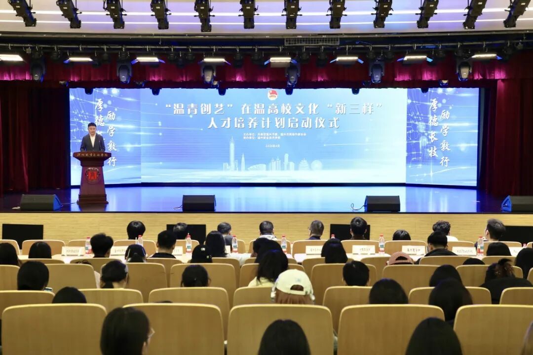 • 4月1日下午,由共青团温州市委、温州市网络作家协会主办的“温青创艺”在温高校文化“新三样”人才培养计划启动仪式在温州职业技术学院举行。共青团温州市委书记谷川、副书记王晨之,温州职业技术学院党委委员、宣传部部长童卫军,文化“新三样”产业优秀企业家,各在温高校团委负责人及师生代表共400余人参加启动仪式。