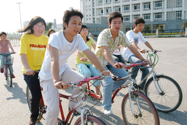 昨天下午,温州职业技术学院国际贸易专业赵崇良等几位大一学生,趁着周末时光租了3辆双人自行车去大学城周边的郊区游玩,放松心情。