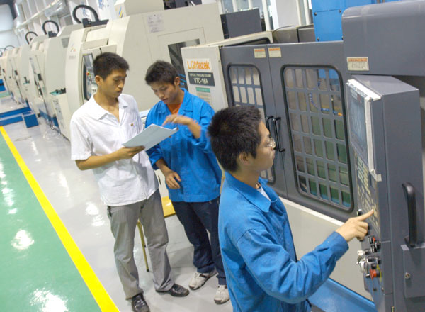 该院老师在新落成的国家示范性数控技术实训基地指导学生操作数控机床