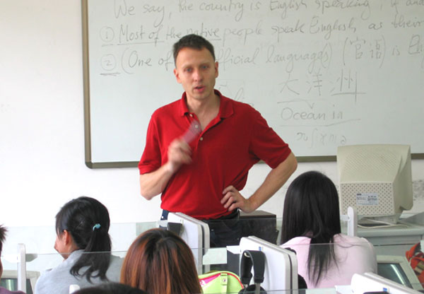 马塞尔一个星期上9节英语课、2节德语课,门下的学生近400人。德国人做事的特点是认真、严谨,马塞尔把绝大多数时间用在了备课、授课以及与学生的交流上。为了让学生更快、更准确地理解英语、德语的意思,马塞尔会为一个单词专门请教中文的读法,然后在课堂上传达给学生。久而久之,马塞尔掌握了不少中文词汇,现在虽然汉语会话还有困难,但“饺子”、“足球”、“柏林”这些中文词汇从马塞尔口中蹦出,字正腔圆,极少外国人念中文时的拖沓、拗口。
