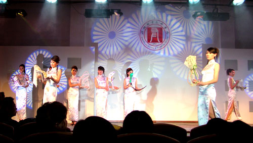 据了解,这些女孩子平均身高在1.73米,三围都比较好,另外有7个男生也参与其中。他们中,有四个也曾经参加过校外的商业活动,有一定的经验,其余都是近期培养的。谢丽雯老师说,“刚开始对这些学生都不了解,训练的两个月他们让我很感动,每次训练都很认真,如果说通知两点到,他们都会提早到,这种精神很难得。”来自服装系的大一学生也是主力模特之一叶慧告诉记者,“平时我们都是利用星期六、星期日的休息时间来训练,刚开始训练的时候,觉得很辛苦,高跟鞋穿得两脚起泡,但是蛮开心的。”
