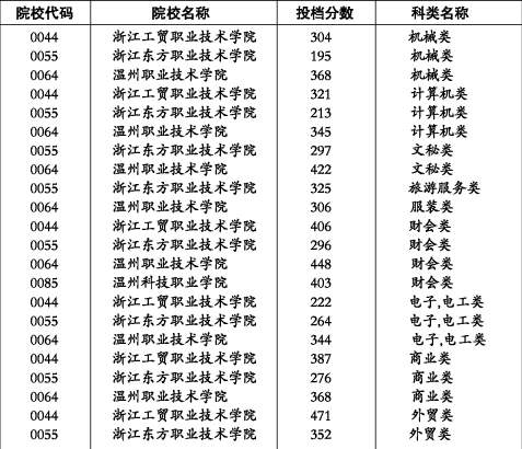 《温州都市报》温州部分高职院校首轮投档分数线