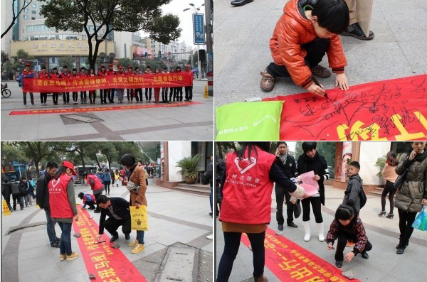 3月10日上午10点,温州爱心璀璨义工队联合温州职业技术学院计算机系志愿服务队、温州职业技术学院成教学院青年志愿服务协会、温州爱心璀璨昱翔小义工队50多名义工,在人民路和大南路十字街口、车站大道和温迪路十字路口分别开展“爱在斑马线—传承雷锋精神、关爱文明出行”交通劝导活动。