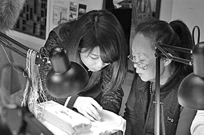 浙江工贸职业技术学院的“红马甲”志愿者正在一对一教中老年人绣瓯绣。