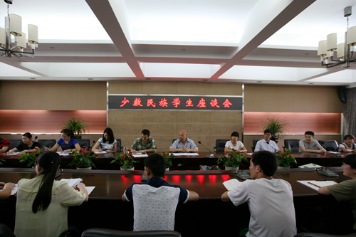 叶吉波处长首先介绍了举办少数民族学生座谈会的初衷,意在更深入的了解少数民族学生的生活、学习情况,促进师生之间的交流,减少民族之间的距离,互相沟通,反馈信息,切实帮助大家解决生活中遇到的困难。通过座谈,鼓励更多的少数民族学生在大学期间放下胆怯之心,充分利用学院的大平台,抓住机会锻炼自己,刻苦学习专业知识,不断提升自己。同时,他还介绍了我院少数民族学生概况,本学年助学金资助情况,少数民族学生助学金获得者的学习表现等情况。他们中不少人已成为优秀学生、优秀班干部,受到学校和学院的表彰奖励。