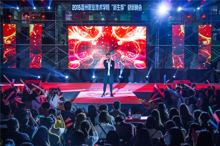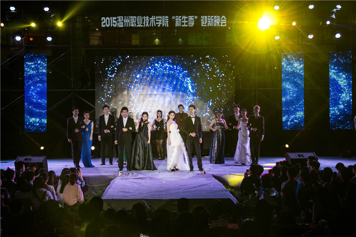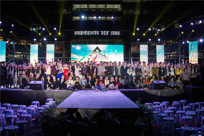 10月15日晚,由共青团温州职业技术学院委员会主办,院学生委员会承办的2015年“新生季”迎新晚会在明德楼前隆重举行。副院长王向红、学生处处长叶吉波、信息技术系党总支书记童炳金、时尚设计系党总支书记谢肖力、学生处副处长刘海明及学生处、团委全体工作人员、各辅导员代表和学生代表等1000余人参加了此次晚会盛宴。