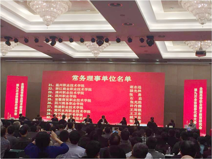 12月11 号上午,全国高等职业技术教育研究会第九次全体理事大会暨学会成立30周年学术研讨会在杭州召开。我院当选为中国高等职业教育研究会第九届理事会常务理事单位,谢志远院长为常务理事。我院公共教学部王新成副教授获第八届研究会高职教育优秀理论研究奖并受表彰奖励。