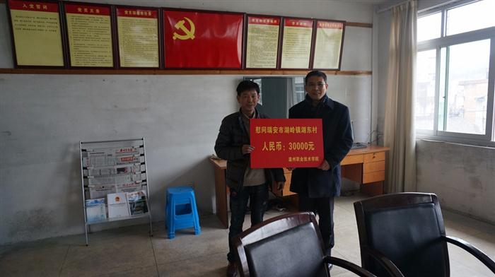 2月1日,学院党委书记王靖高,副院长兰玉景,院党委委员、组织部部长徐利群一行先后前往学院扶贫挂钩的瑞安市湖岭镇湖东村和溪坦村进行调研并开展新春慰问活动。