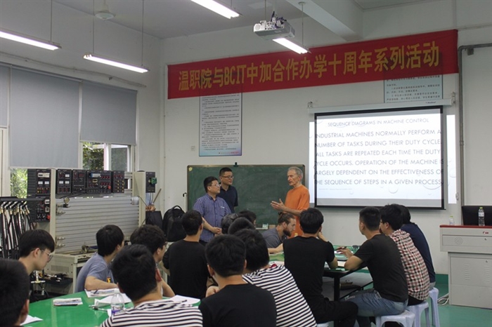 “在加拿大,多数年轻人会选择去职业院校学习,既当学徒,也当学生。很多学生在职业院校读书的的费用,都是靠自己赚的,学习目的性非常明确。而加拿大的高等职业教育颇有特色,在全球范围内具有广泛的影响。” 加拿大不列颠哥伦比亚理工学院(简称BCIT)机械工程系Mick Audic教授6月6日—10日在对温职院中外合作项目教学巡查中讲述BCIT学生生活时指出。今年,是温职院与BCIT中外合作办学十周年。每年6月上旬,BCIT都会派遣专业教师以及学生大使来温职院进行年度访问,主要对双方合作专业——机械设计与制造专业的相关教学资料进行检查,并共同探讨合作专业的人才培养方案和课程改革等内容,除此之外,双方还会开展一系列的课程讲座和学生联谊活动。