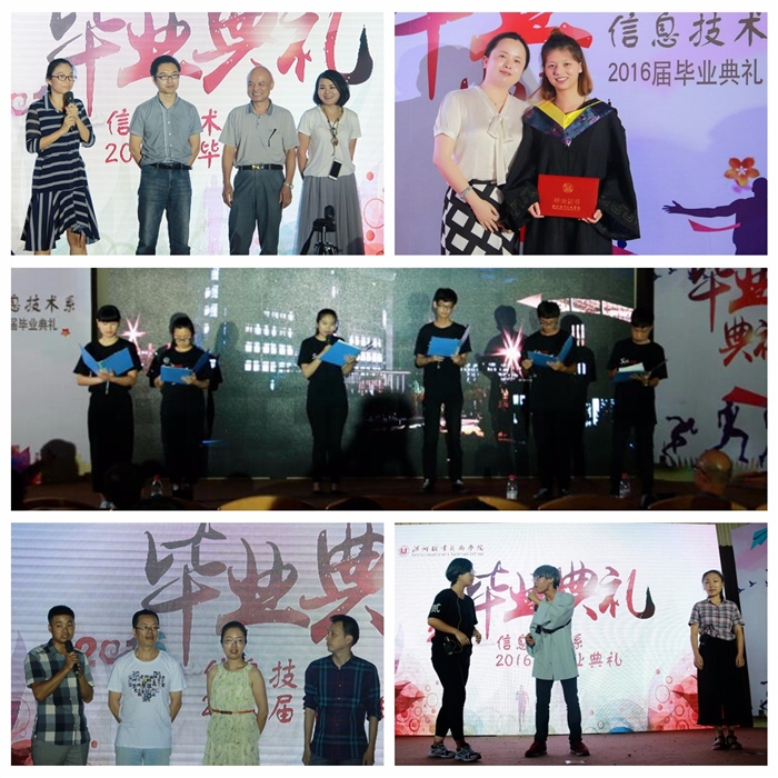 2016年6月23日下午,我院信息技术系2016届学生毕业典礼在明德楼树人堂隆重举行, 信息技术系329名毕业生正式和自己的大学生涯挥手告别。学院副院长王向红、信息技术系主任田启明、系党总支书记林天峰等领导,13级各教研室、各班班主任教师出席了典礼。