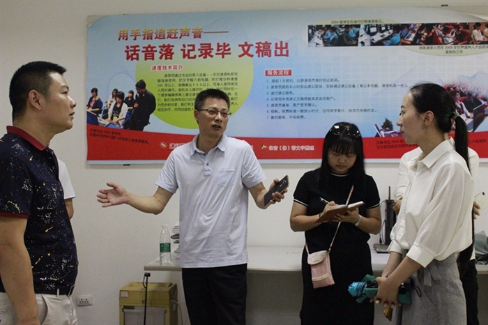 7月13日,在院党委副书记夏晓军的带领下,人文系主任张宝臣、书记郑国波、副主任陈永丽、学生处副处长徐贤明、学工办主任杨晶晶等一同看望慰问了人文系暑期实践队伍并了解实践情况。夏晓军副书记一行先是赴知行楼看望了由甘术恩老师指导的商英专业留校实践队伍;夏书记亲切地询问师生的实践情况,了解了实践内容,对实践项目及同学们的表现给予了肯定,还关切地提醒同学们劳逸结合、注意休息。随后,夏书记一行又驱车前往茶山镇上看望了王明川老师指导的ones潮拍摄影队,此时,同学们正在布置场景准备拍摄一组创意照片,这引起了走访团的极大兴趣,与实践队的师生交流了许久。