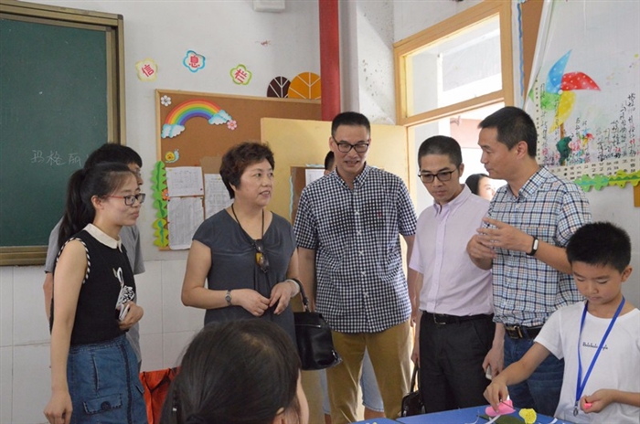 7月15日上午,温州市教育局副局长安晋、高教处处长黄万统等一行来到我院工商系暑期社会实践的驻扎地——温州滨海学校,看望了正在进行暑期社会实践的师生们。院学生处处长叶吉波、工商系党总支书记李建中、温州滨海学校校长兼书记章魁立等陪同走访。