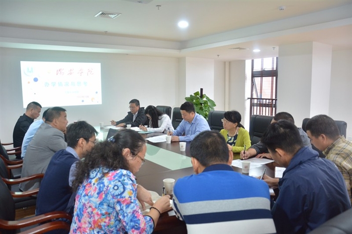2016年10月11日上午,学院院长谢志远、副院长王志梅到瑞安学院调研工作。高职研究所所长兼教务处副处长金欢阳,瑞安学院院长谷智静、副院长廖新飞、党总支副书记马德龙等陪同调研。