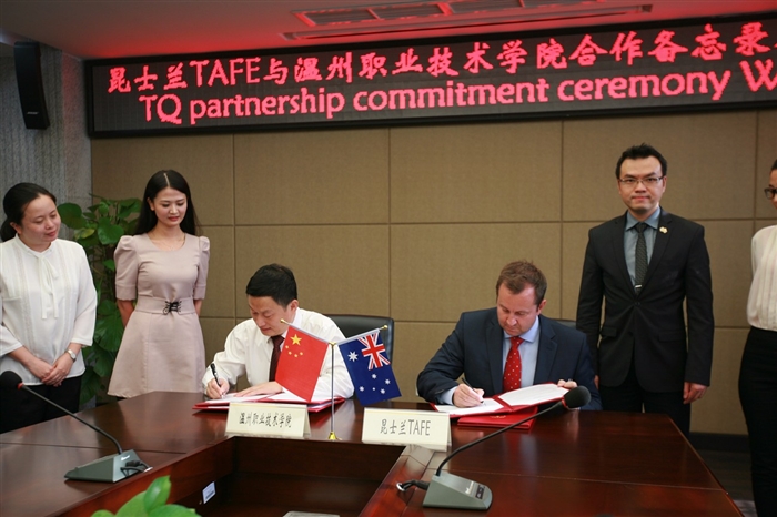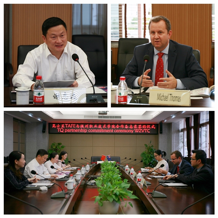 谢志远院长代表学院与昆士兰TAFEMichael Thomas先生签订合作协议。