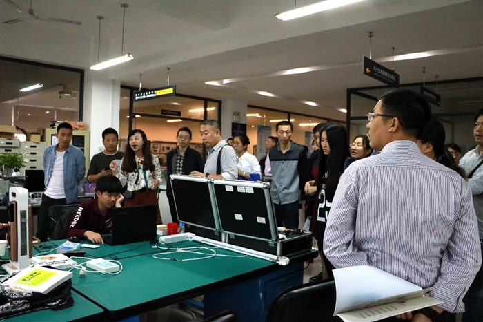考察团还实地参观考察了学院技术研创大楼集聚区、创客交流中心、校企共建的产学研基地、图书馆等。