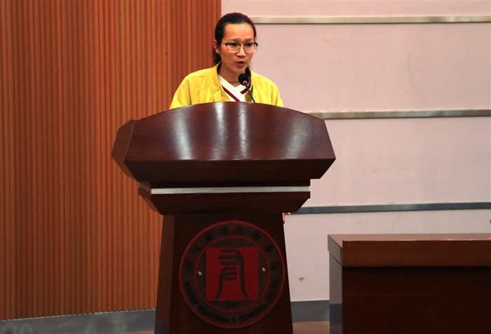 受助少数民族学生代表来自工商系的谢海缘同学作了发言。