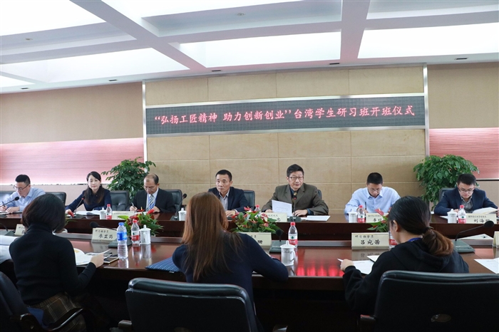(外事办通讯员 王若翔)11月17日上午,我院在正德楼三楼会议室举行“弘扬工匠精神 助力创新创业”台湾学生研习班开班仪式。温州市人民政府台湾事务办公室副主任林瑞都,我院副院长何忠,台湾树德科技大学助理校长洪春棋,我院相关部门、系部负责人,8位台湾学生代表参加了开班仪式。仪式由学院外事办主任潘玲珍主持。
