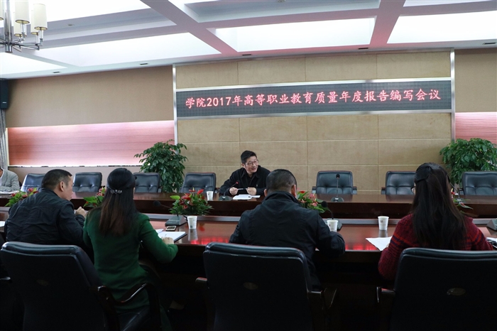 何忠指出,高等职业教育质量年度报告是学院开展自我评估、建立健全高等教育质量保障体系、完善学院信息公开制度的一项重要工作,也是学院向社会展示办学特色、办学理念和办学成果的重要途径。何忠要求学院各部门要高度重视“质量年度报告”编制工作,加强学习,保证质量,按时完成,密切配合,高标准、高质量完成数据材料收集和报告编制工作,通过质量报告的编制工作来促进自身管理水平的提升。
