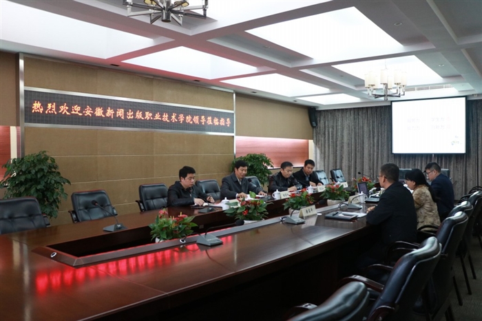 本网讯 11月29日上午,安徽新闻出版职业技术学院党委书记程德和一行来我院考察交流。我院副院长王志梅与相关部门负责人热情接待了来访客人。