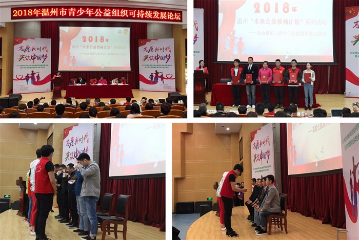 论坛现场还举行了2018年温州“未来公益领袖计划”合作协议签约仪式、高校公益组织学生负责人向社会公益组织负责人拜师仪式、高校优秀志愿公益团队交流和主题发言等环节。在主题发言环节中,社会公益组织负责人与高校公益组织代表围绕“媒体视觉下的高校公益组织”、“如何实现公益创业及就业”、“公益社团如何规范化运营”等主题进行了深度交流探讨。