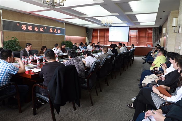 本网讯 4月11日下午,我院在正德楼三楼会议室举行“课程思政”推进会。学院党委副书记夏晓军,党委委员、宣传部部长蔡后界,教务处、学生处、教学质量监控处等部门负责人,各系部主任、党总支书记,瑞安学院副院长、党总支副书记,全体专业负责人参加会议。推进会由蔡后界主持。