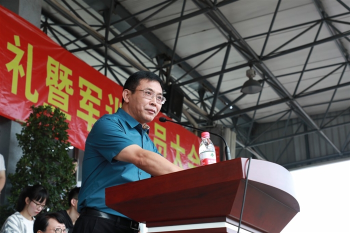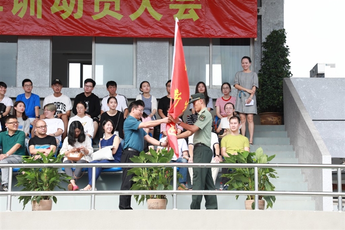 最后,王靖高为军训团授旗,标志着为期七天的军训正式启动、2018级新生的大学生活就此拉开序幕。