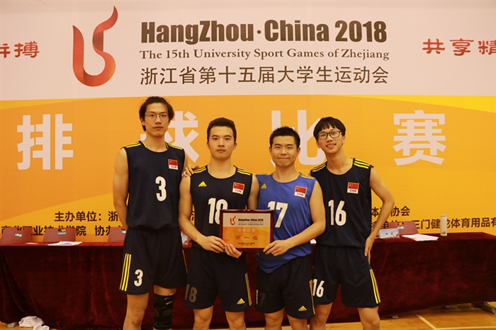 我院男子排球队由赵显品老师任领队,潘少敏老师任教练,由杜挺拔、洪文迪、叶志聪、谢温伦、林胜海、李澳辉、游力远、王宁、洪邦迪、庞文展、尹大伟、潘格等12名队员组成。在小组赛中,先后战胜浙江育英职业技术学院和金华职业技术学院等5支队伍,以小组赛第一名的成绩晋级8强。在8强赛中,分别战胜湖州职业技术学院、浙江经济职业技术学院两支队伍成功晋级决赛。在决赛中,又以25:7与25:20的较大比分,直落两局,战胜传统强队浙江机电职业技术学院。最终力克群雄,以8场连胜、未失一局的优异战绩,获得本次排球比赛的冠军。