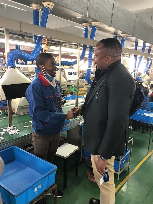 艾尼伦一行先后参观了留学生实习企业泰力实业有限公司、学院实训基地、留学生寝室和学生事务中心,对我院办学实力和留学生项目给予了高度评价。