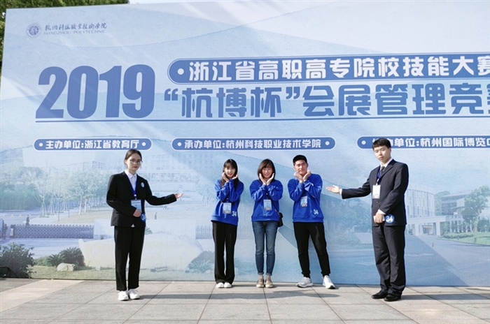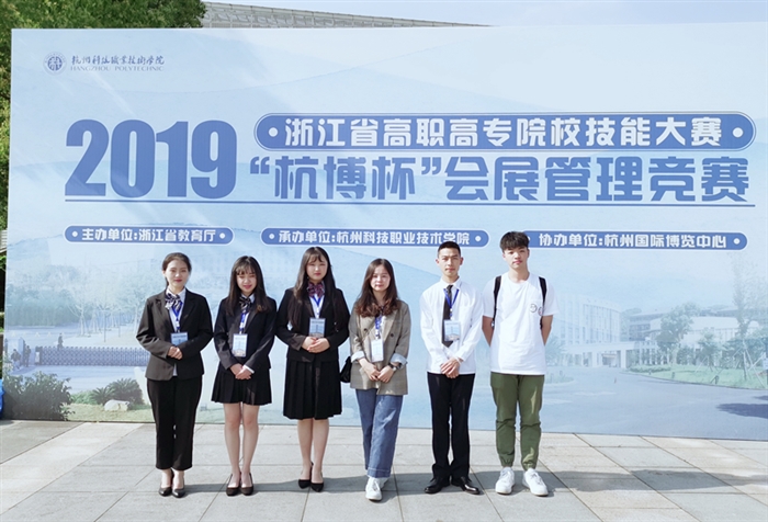 本网讯 (工商系通讯员 叶侨成) 4月26日-27日,由浙江省教育厅主办的2019年浙江省高职高专院校“会展管理”技能大赛在杭州科技职业技术学院举行。我院工商管理系学子在竞赛中表现出色,参加竞赛的三支团队全部获奖,揽下一项一等奖,两项二等奖。其中,由李琼、金浏河老师带队指导的学生翁旭颖(酒店1601)、朱晨(酒店1802)、王国旗(酒店1802)、魏呈源 (酒店1802)荣获团队一等奖,位列所有参赛队伍第一名。该团队新颖的选题、出色的表现获得评委的一致认可。