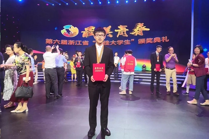 6月29日下午,第六届浙江省“十佳大学生”颁奖典礼在浙江电视台举行。省教育厅党委书记、厅长陈根芳,省委宣传部副部长李杲,省教育厅党委副书记干武东,团省委副书记周苏红、省广电集团编委许东良等出席活动并颁奖。经高校推荐、初评、在校大学生投票、网络点赞、专家投票等环节,共评选出第六届浙江省“十佳大学生”10名和入围奖20名。我院戴彬炳同学脱颖而出,荣获入围奖,并受到了现场表彰。