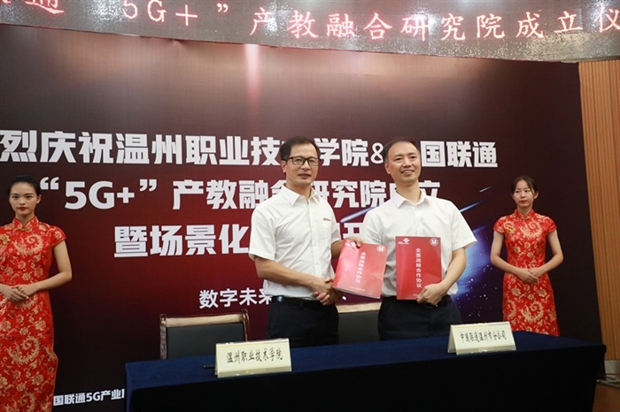 新学期伊始,温州职业技术学院刚刚实现了5G网络校园全覆盖。9月5日,温职院又携手中国联通共同打造“5G+”产教融合研究院(以下简称“研究院”)。中国联通温州市分公司5G+产教融合专项投入温州职业技术学院2300万元。
