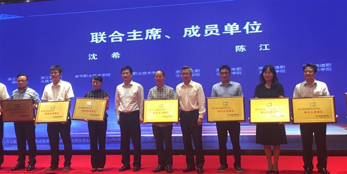 本网讯 (招生就业处通讯员 张静)10月11日,浙江省轨道交通产教融合联盟在杭州举行成立大会。联盟由浙江师范大学、浙江省轨道交通运营管理集团联合发起,61家企业、院校及科研院所共同参与。省交通集团,省发改委、省交通运输厅、浙江师范大学等单位领导出席会议并讲话。各联盟单位138名代表参加会议。我院副院长王志梅受邀参加会议。会上,温州职业技术学院被授予联合主席单位。