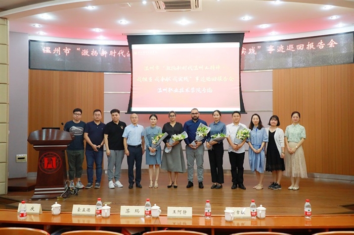 本网讯 9月23日下午,温州市“激扬新时代温州人精神·我担当 我奉献 我实践”事迹报告会温州职业技术学院专场在正德楼罗山厅举行。学校邀请5位报告团成员作先进事迹报告,激励全校师生学习先进、崇尚先进、争当先进,干在实处、走在前列、勇立潮头,以实际行动践行新时代温州人精神。校党委副书记夏晓军亲切会见报告团成员,党委委员、宣传部长蔡后界参加并主持报告会。