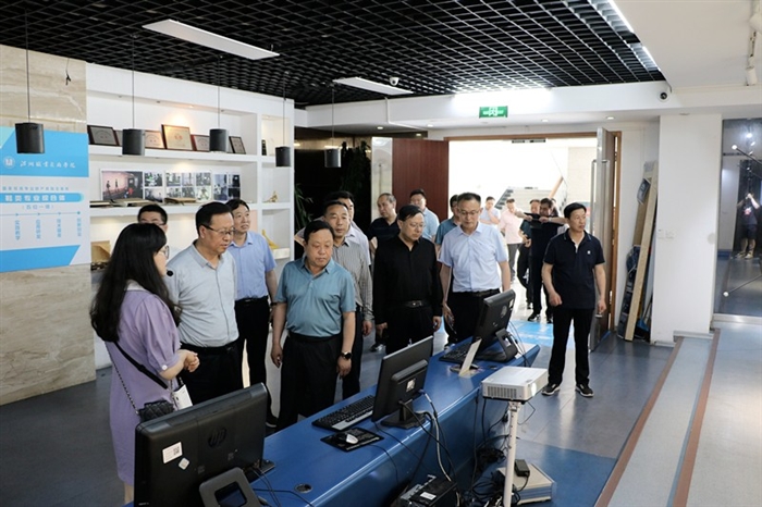 考察团一行先后参观考察了我校技术实训基地、图书馆及技术研创大楼等地。每到一处,他们都仔细听取讲解员介绍,边听边走边议,对我校的办学模式、科技服务、人才培养成效给予高度评价。