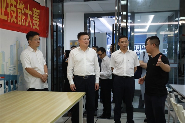 随后,郑主任一行考察了机器人自动化生产线及ABB智能技术实训教室、中国足踝健康装备研究院、训研创智能制造公共服务中心、国家级众创空间、温州聚合物材料及机电产品表面改性技术研究重点实验室、“5G+”产教融合研究院等地,详细听取相关院系、实训室、科研机构负责人的情况汇报,并与正在实训室上课的学生亲切交谈,悉心询问他们的学习和生活情况,鼓励他们刻苦钻研,争做“技术能手”。