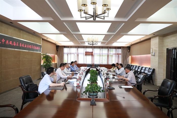 本网讯 5月19日上午,瓯海区委副书记、政法委书记刘云峰一行莅临我校调研指导防范电信网络诈骗工作并召开座谈会。校党委书记王靖高、副书记夏晓军、相关职能部门负责人参加会议。