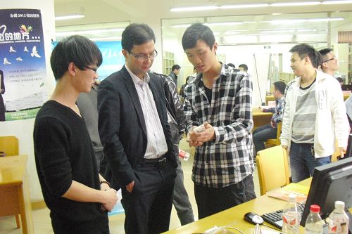 计算机系于2012年4月6日下午在学院图书信息楼2楼大厅举办了2012届毕业设计作品“做、展、评”暨人才招聘会。院长丁金昌、副院长夏晓军及相关职能部门负责人等莅临现场指导工作,部分系领导和师生参观了毕业生作品展和人才招聘会现场,并提出了许多好的意见和建议。