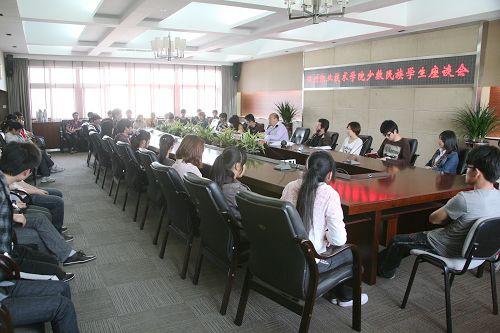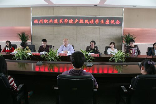 4月11日下午,我院召开少数民族学生座谈会。温州市少数民族联谊会会长、学院党委委员、副院长兰玉景,学院宣传部、统战部部长朱金荣出席会议。会议由学生处副处长苏跃飞主持,学生处、辅导员代表、少数民族贫困学生代表40多人参加座谈。