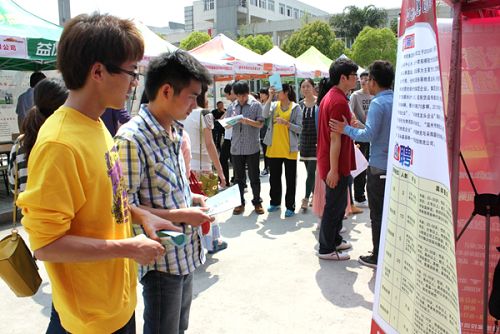 在信息楼广场则是毕业生与企业进行人才对接双向选择的热闹场景,共有78家用人单位应邀参加本次成果展和人才推介会,为毕业生提供1000多个就业岗位。法派集团、人本集团、红蜻蜓鞋业股份有限公司、中国蜘蛛王集团等30余家温州百强企业也在现场设摊纳贤。